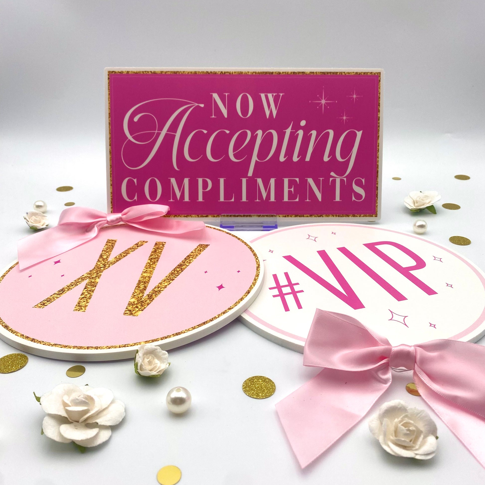 Add some glam to your 15th birthday party photos with our Quince Pink Photo Booth Props! These unique props will make your photos stand out and capture the fun memories of your special day. Strike a pose and let these props bring out your inner star!